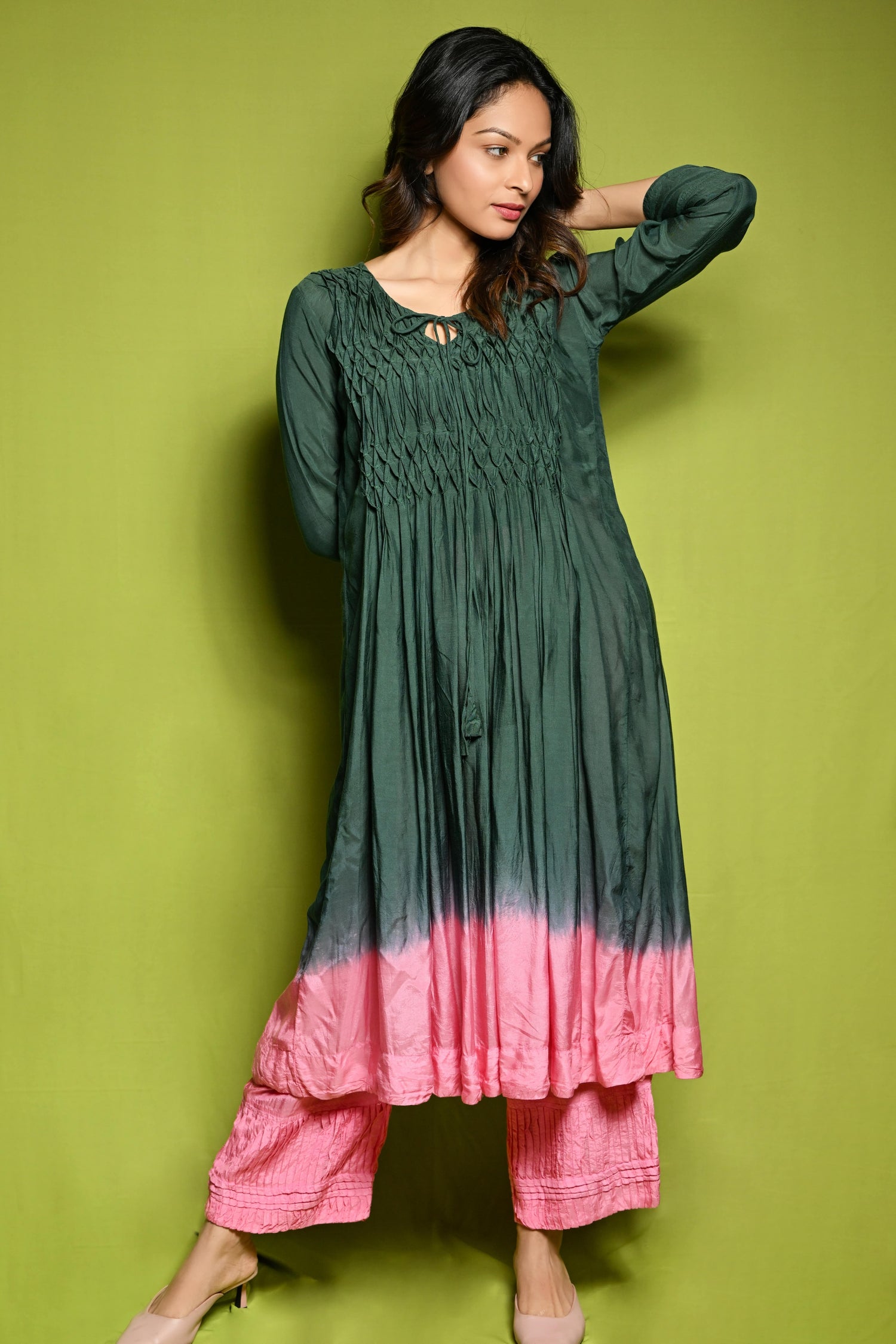 Radiant in Red: Hand-Block Pleated Cotton Dress